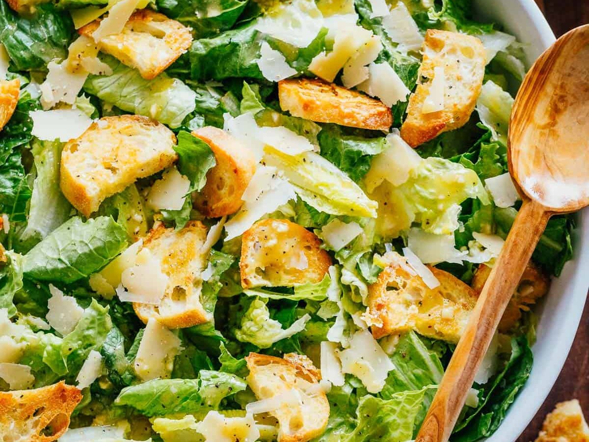 Caesar salad with crispy homemade croutons and light Caesar dressing. This classic Caesar salad recipe is sure to impress your dinner guests!