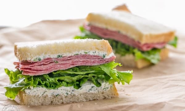 萨拉米三明治大约需要5分钟就能完成,但味道精致且令人满足。非常适合工作或学校午餐,因为你可以提前一晚去吃。酱料是奶油奶酪基底,这样三明治就不会变软。